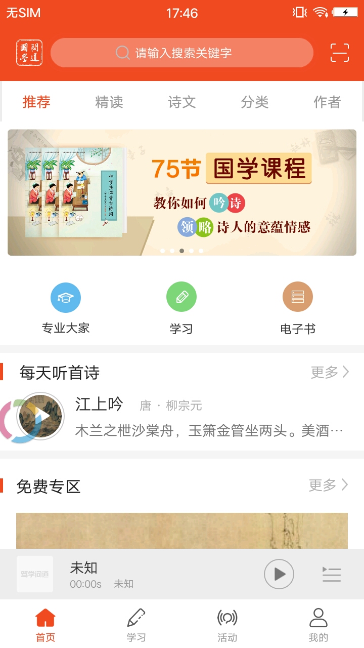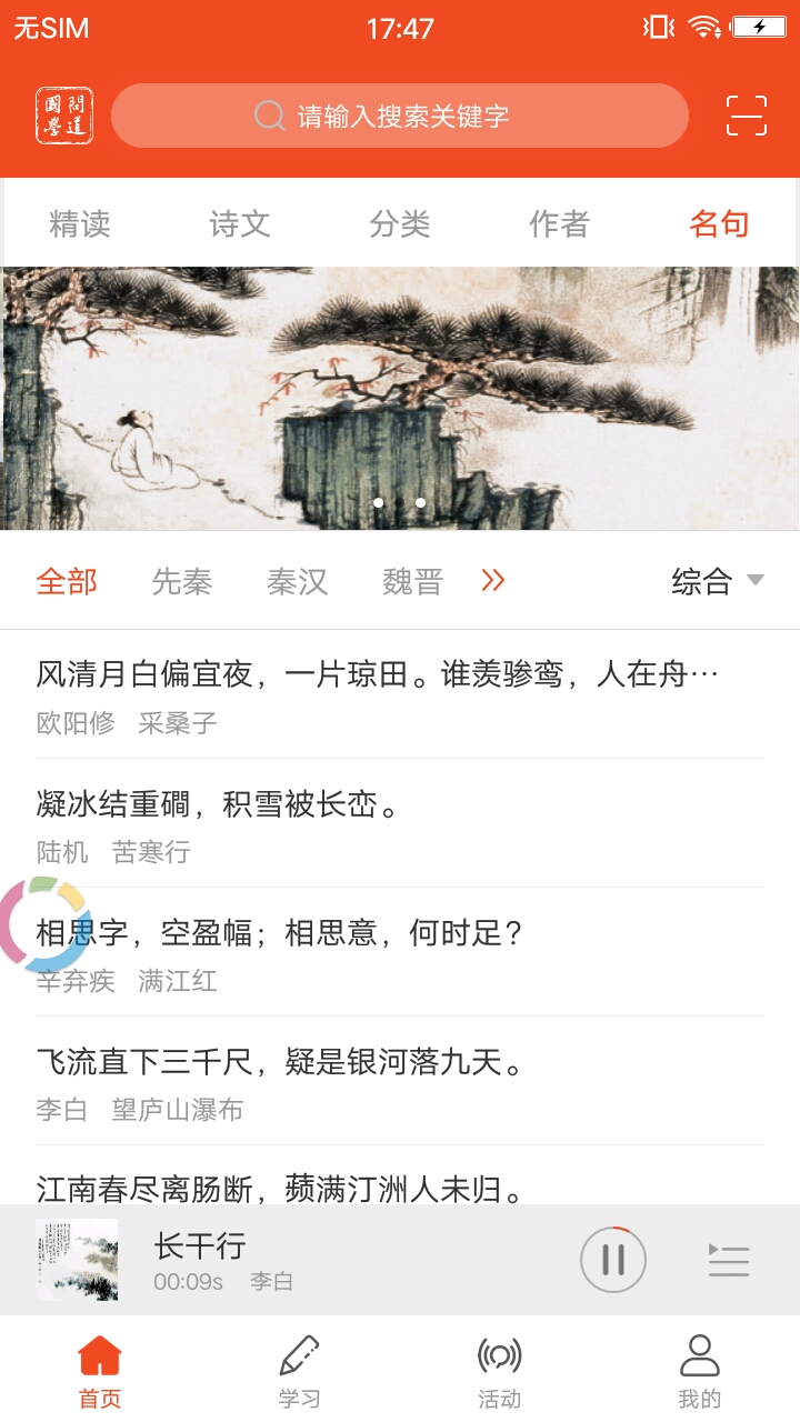 本平台对经典诗词提供了专业的朗读音频,可配合教材诗文反复听读。