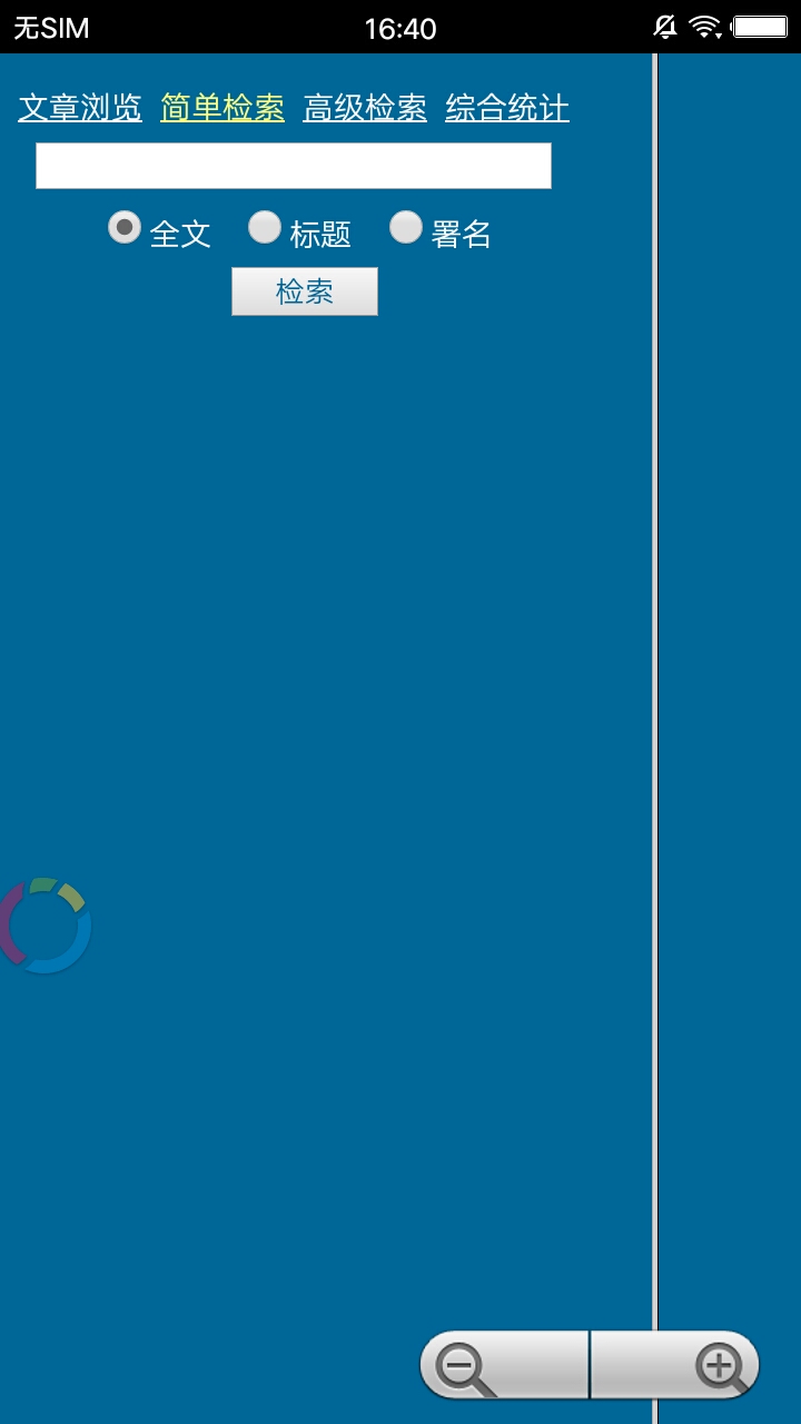 2、该系统分为“文章浏览”“简单检索”“高级检索”“综合统计”四种查询方式,网友可以检索“