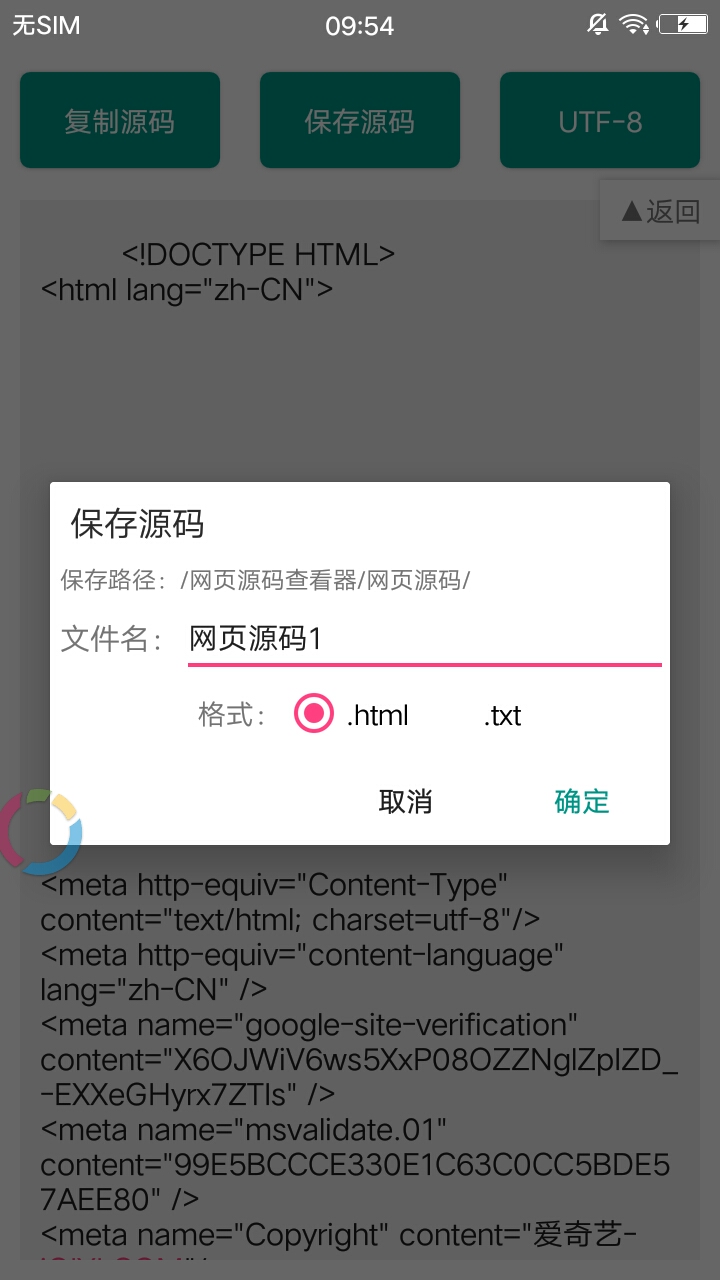 4、可以保存源码,支持.html或者是.txt两种格式,保存的文本后期也好找。