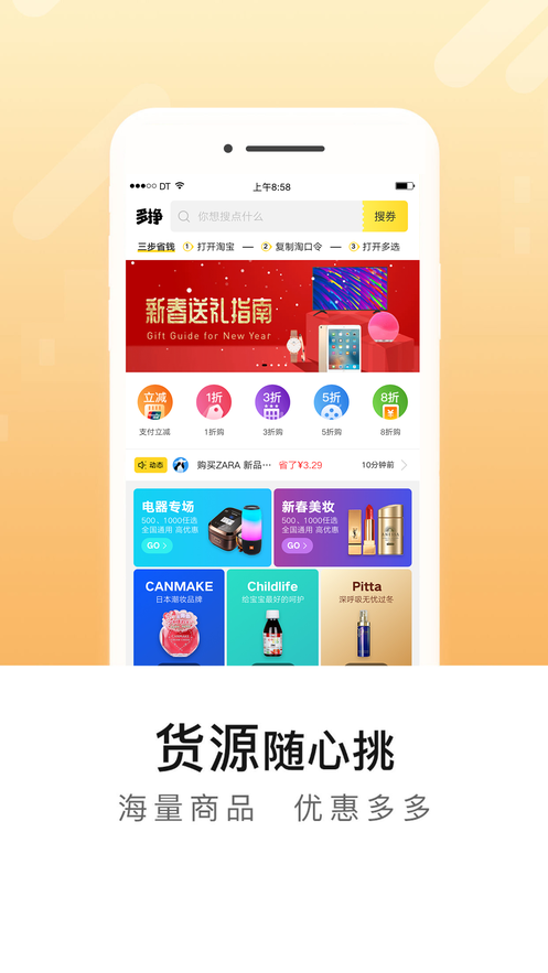 3、超级多的商品优惠券让你拿不停,手机拿券购物,帮你轻松省钱。