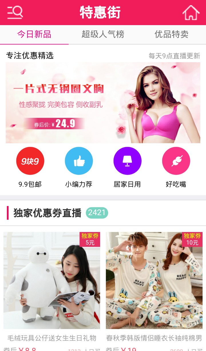【省钱购】:特惠街为广大朋友每日带来千款商品优惠券,最新的爆款好货整点秒杀信息。