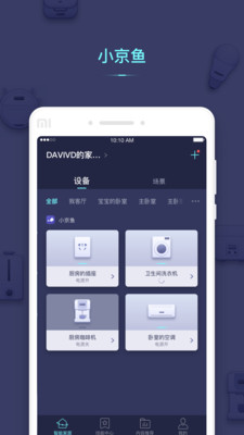 从无数遥控器的杂乱中解放出来,“小京鱼”为您提供统一添加、管理、操控智能设备的技能。通过智能场景,您还可以设置与设备之间的小默契。例如: 当您下班了,门磁监测到您回家,玄关灯会自动打开,点亮生活。