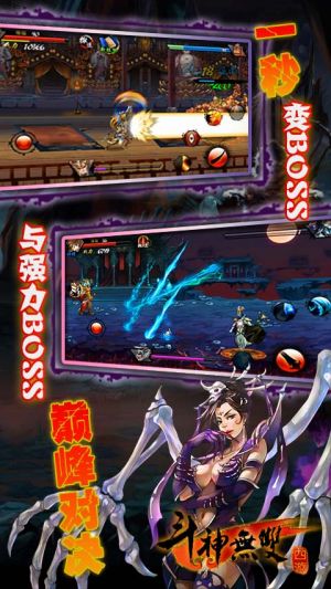 游戏中不同职业有着完全不同的操作方式,携带双武器的神将,通过攻击获得连击点的灵猴,斗魂系统让你一秒变身为任意BOSS进行战斗,体验完全不同的战斗!斗神无双以出色的连击浮空战斗,华丽多样的技能招式,绚丽的全身换装系统,丰富的掉宝,多样的关卡模式,打造超强打击感硬派格斗手游!真玩家,来战个痛快!