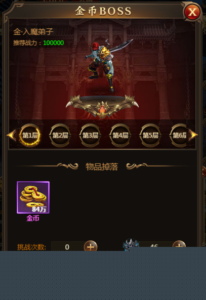 每一个小副本共有十八层,层数越高,提供的相应资源也越多同时所需要的战斗力也越高。拿金币副本举例,第一层只需要战斗力达到10万,就可以得到84万的金币(推荐战力为绿色,代表自己可以挑战成功)