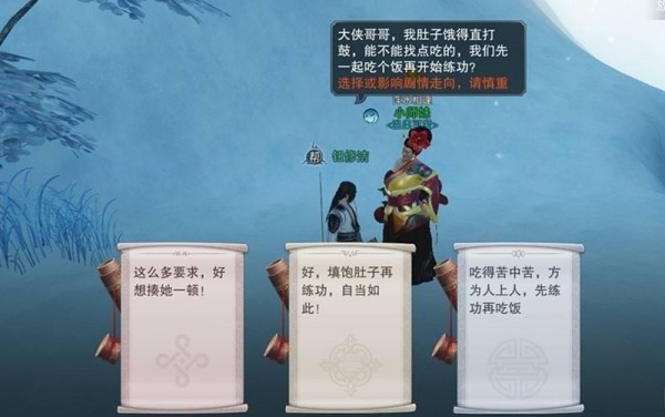 例如很多玩家会在华山遇到一位奇葩小师妹,她不仅画风粗犷,还会对玩家提各种得寸进尺的要求,此时玩家可以遵从内心揍她一顿,也可以强忍脾气顺着她,而“忍辱负重”的玩家后面会体验到意外的剧情秘密哦!