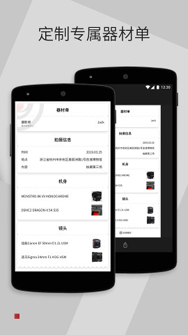 通过导入器材图片、填写名称,即可帮助你快速进行器材分类,科学高效管理,建立专属于你的器材清单!