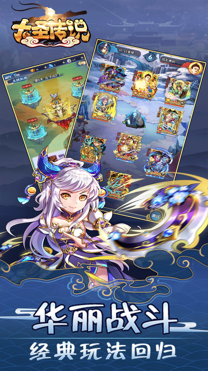 《大圣传说》是一款经典的西游题材卡牌,传统的金木水火土属性相克,丰富的人物羁绊组合,一样的卡牌不一样的的组合玩法。大圣成圣传说之路,与君共闯九重天。大圣,此去欲何,踏南天,碎凌霄,若一去不回,便一去不回!