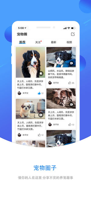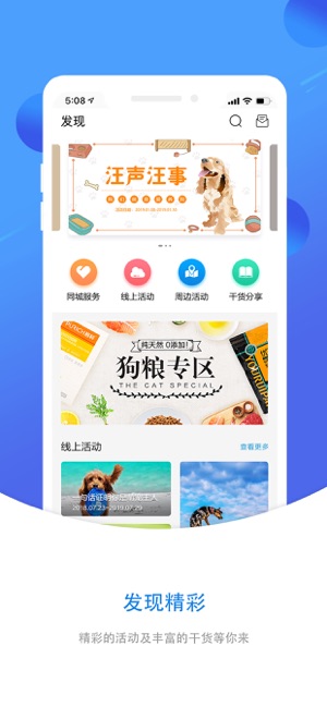 趣事、趣图、趣视频,关于狗狗的一切都可以在这里分享,点击上传,打造你自己的狗明星;宠物姻缘:这里有你爱犬脱单的一万个方式,查看宠物姻缘,下一个脱单的就是你家狗狗; 线上活动、周边活动:线上线下多种活动联动开展,和朋友一起养狗才开心。