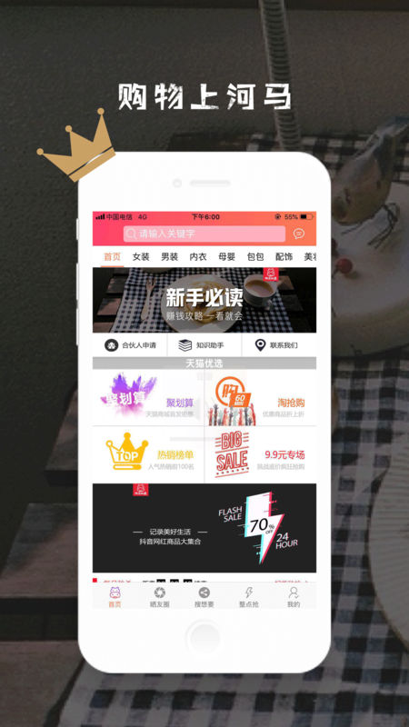 《河马优选》是一款折扣优惠潮品新品随时上架的商城app,在这款软件中你不仅能体验到全场包邮的巨大实惠,更可以让你在这款软件中享受到先领券,后淘宝,每次买买买都更便宜!