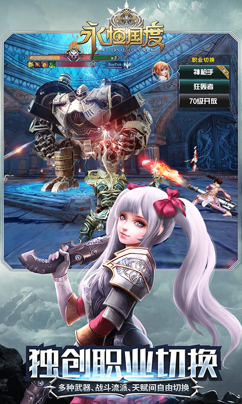 《永恒国度》独创多职业自由切换体系(同种族4种职业形态随意切换),采用Metal渲染技术,基于4万平方公里的无缝地图,融合坐骑陆空进化系统,任你翱翔!