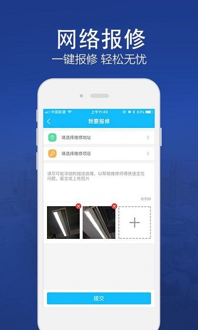 2、网络报修:师生可提交报修申请,随时查看了解报修进度;