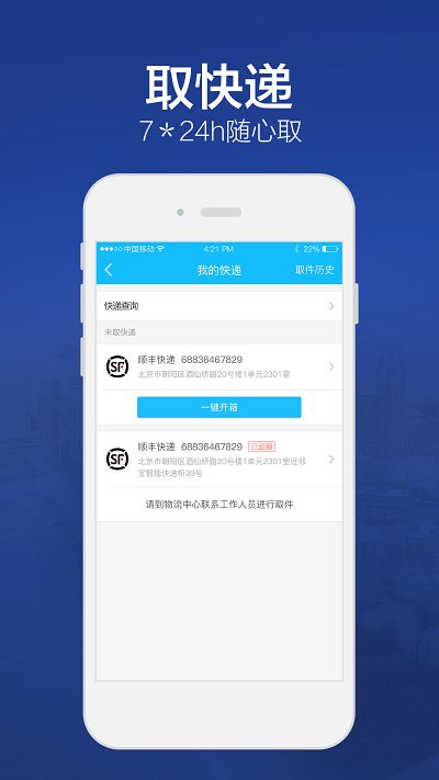 4、取快递:师生可遥控智能快递柜一键开箱,免去排队输取件密码的烦恼。