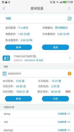 1、操控设备:随时随地管理租房用电,用水;