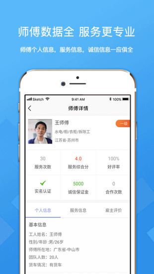 全国拥有二十万师傅,覆盖全国632个城市,每位师傅均通过实名认证和技能考核。