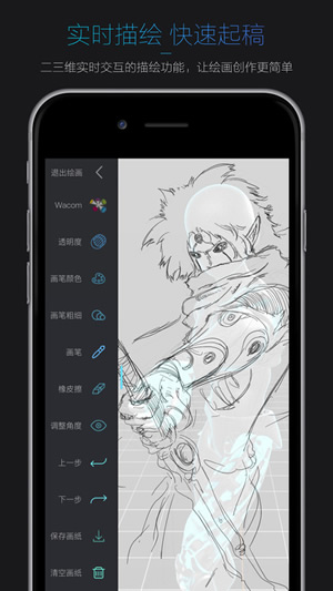 【3D实时描绘功能】Pofi独创的二三维实时交互描绘功能,让绘画技能更快掌握并完成创作。