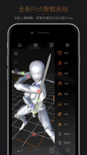 Pofi无限人偶pro是一款移动端三维可操作绘画辅助APP,以人性化和强大功能为绘画爱好者,设计师和艺术家提供全新高效的创作方式。Pofi专业版使用云端下载方式无限制更新绘画资源,包括三维可动人偶、静态虚拟手办、动作库、动画库、手势库、材质灯光库、道具主题包、场景主题包等。通过触屏操作调整人偶,配合资源库快速布景与制定动作,高效完成漫画起稿、动画分镜、电影构图等工作。