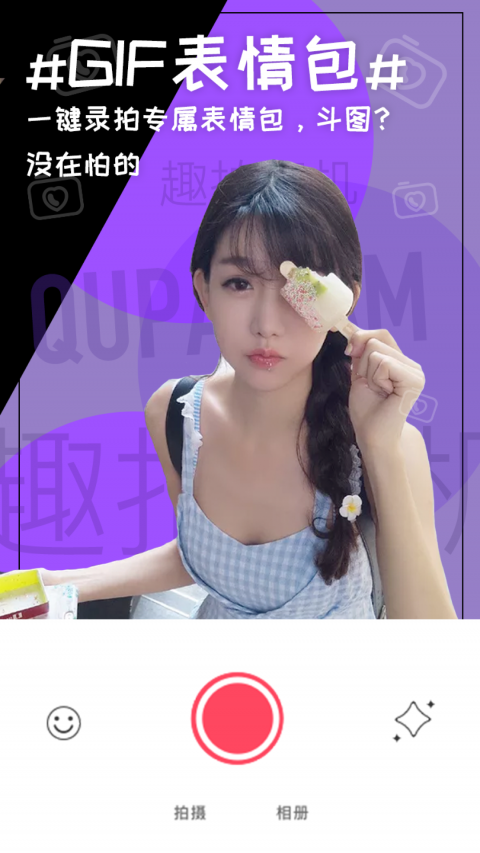 2、GIF表清包:录制生成自拍gif逗趣表清包,轻松分享。