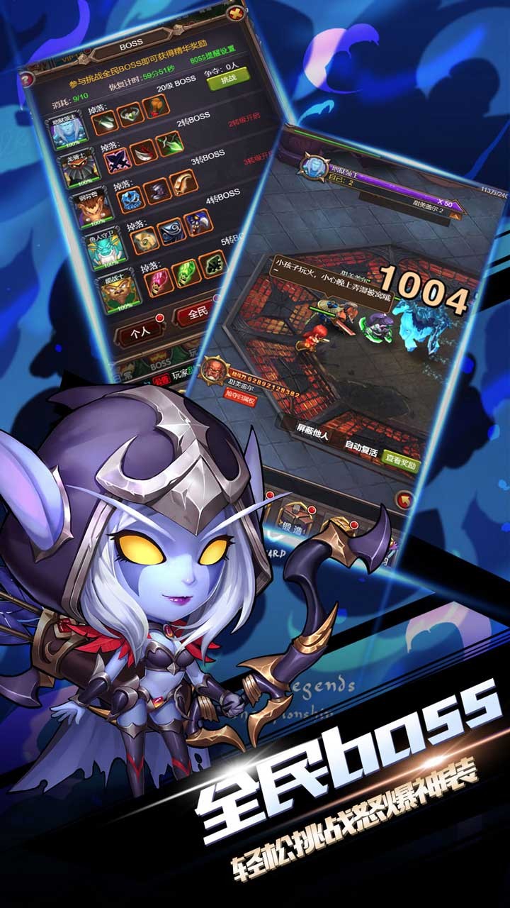 3、BOSS来临,组团挑战瓜分极品;经典刀塔指尖重现,英雄汇聚上演王者之战。