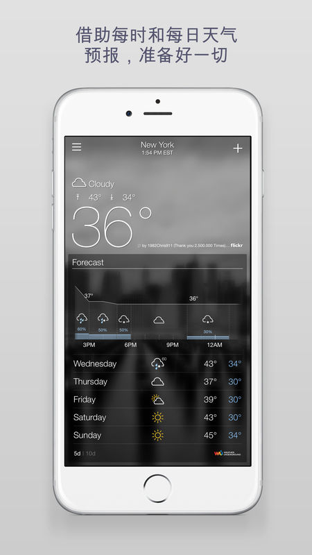 2、详尽的天气信息,包括 10 日的天气预报和 24 小时的温度预报;