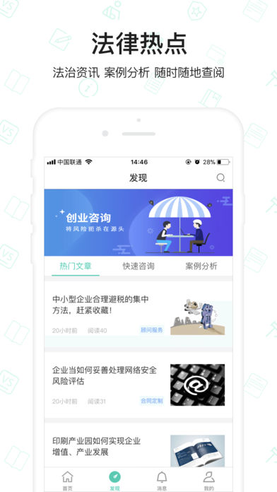 法义是一款整合全国众多家律所的律师资源,为小微企业提供股权期权投融资、合同草拟与审核、商标专利知识产权注册、诉讼纠纷、企业用工等各种法律服务,用户一指召唤,律师30秒迅速响应,提供高效、便捷、安全、可靠的法律服务,建立用户与律师无障碍沟通的桥梁。