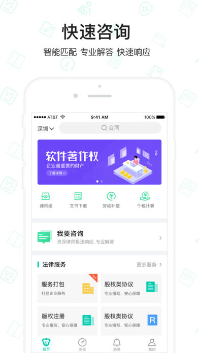 4、法律咨询:大数据智能解析,案件全方位自动测评,30秒匹配专业律师进行解答;