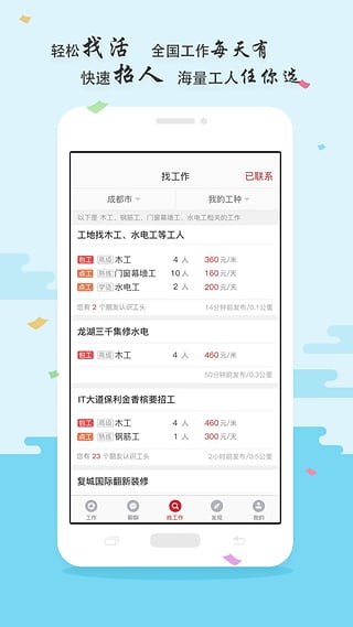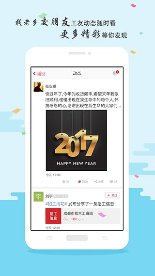 工人班组app主要致力于通过移动互联网帮建筑工友更诚信、快速、便捷的“找活招工”“记工记账”,新增设的“动态”版块,为工友提供了一个娱乐交友的好去处。