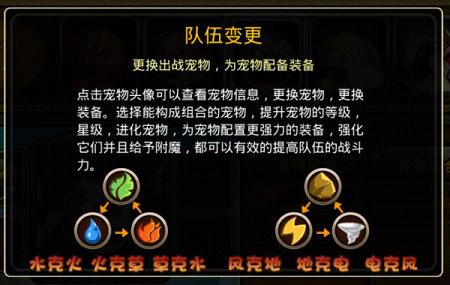 调配队伍的时候,需根据敌方阵容选择出战的小精灵。点击宠物头像即可查看宠物的各种属性信息。比如说敌方阵容里有远程雷电球,己方就要考虑选择同样是远程的地系小精灵。
