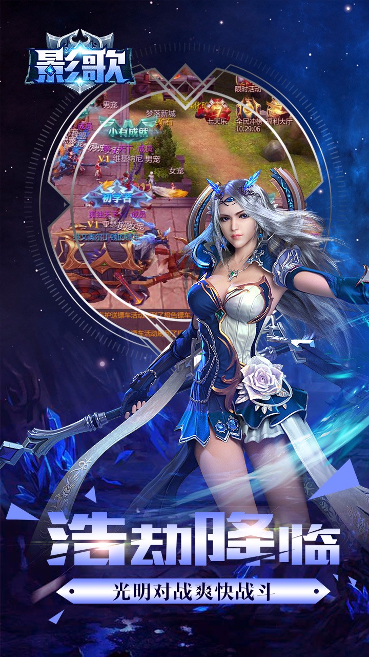 《影歌》为玩家们设置了从竞技场PK到公会争霸赛等丰富的多人交互玩法,全开放式的PK遭遇战让你随时随地就能开战,尽情享受虐菜快感;竞技场1V1天梯排位称王;公会争霸战中你还将领略震撼至极的万人大逃杀,为了所属公会能够进入荣誉神殿万众瞩目,和你的兄弟们一起并肩作战,称霸黑暗世界吧!绵亘万年的卡尔凡隆大陆即将被可怕的瘟疫军团支配,黑暗与恐惧交织下的国度将会走向何方?从现世穿越而来的冒险者,你即将化身最勇敢的斗士,捍卫最后的荣光!暗黑魔幻史诗即将展开,最酷炫的战斗,最的冒险,就在由星辉天拓独代,成都星罗互动研发的3DMMO暗黑冒险手游《影歌》。