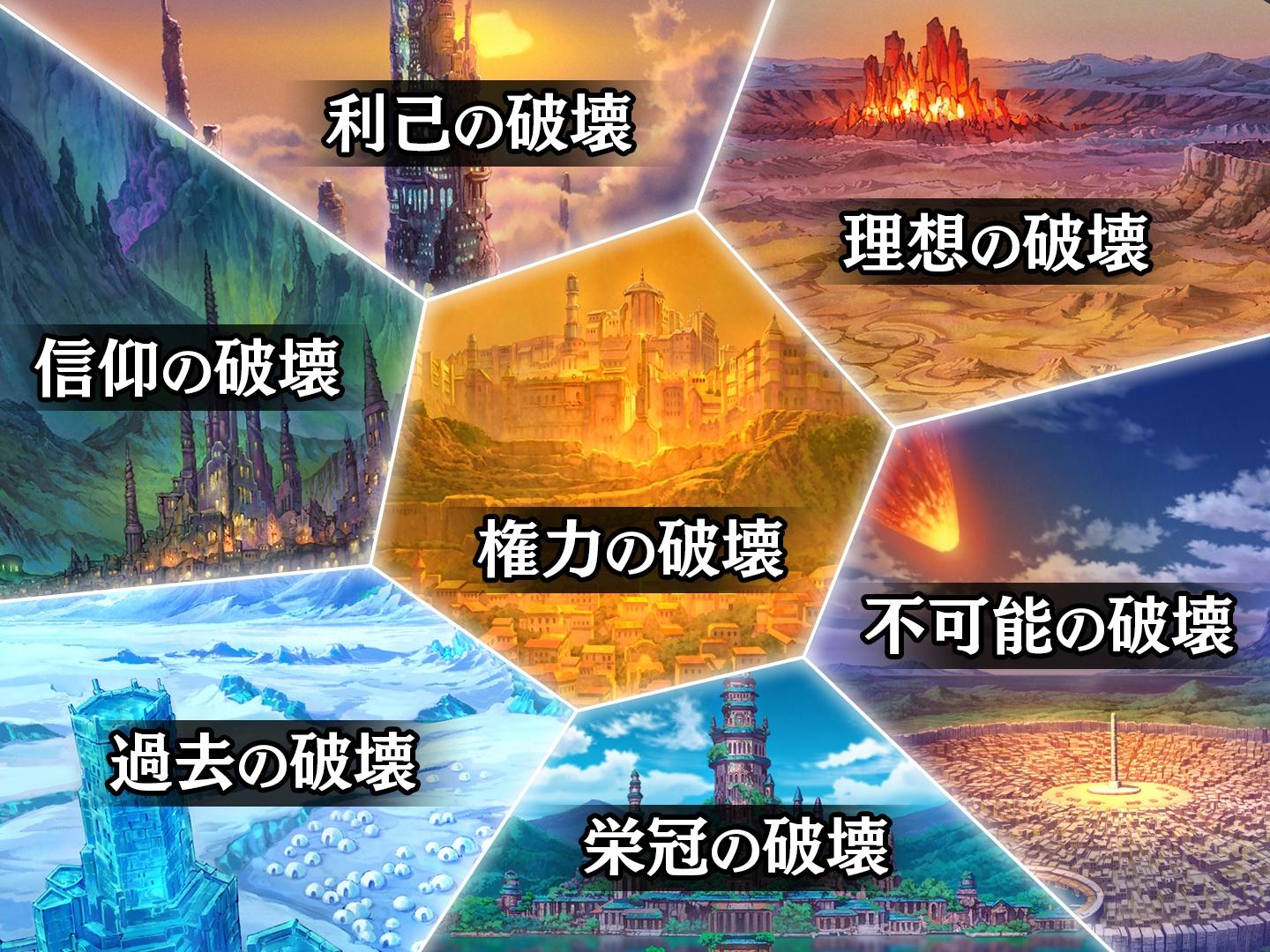本作是一只群像剧RPG 手机游戏,以每一个世界的终结后就会诞生出一个新世界为游戏背景,讲述7 位为了世界以正确的方式终结,而被召唤而来的「破坏者」,展开不同的故事。游戏采用回合制RPG 玩法,并可使用羁绊技能等等,强调出与同伴之间的关系与表现,透过在城镇中与NPC 交流和故事,令玩家进入代入游戏的世界观。