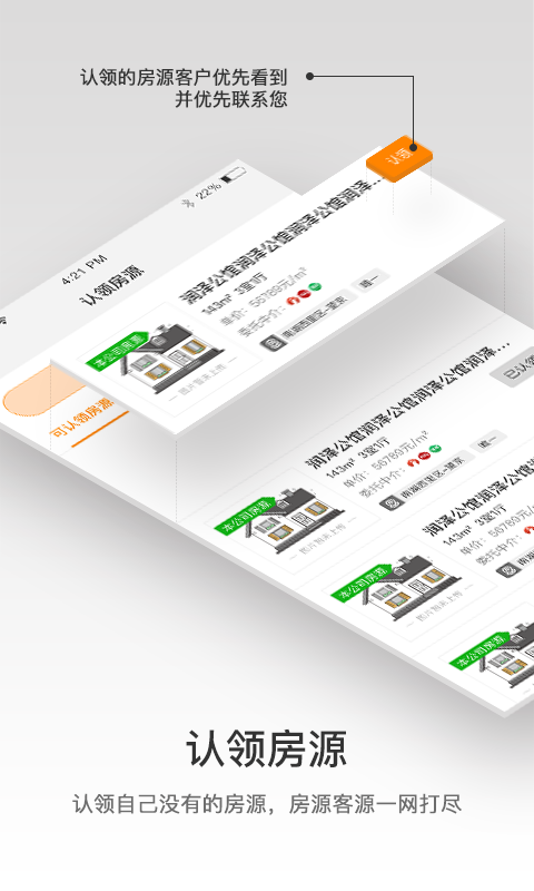 5、【认领房源】您认领的房源在用户端列表页会优先展示,用户也会优先联系到您,房源客源一网打尽,用过都说好。