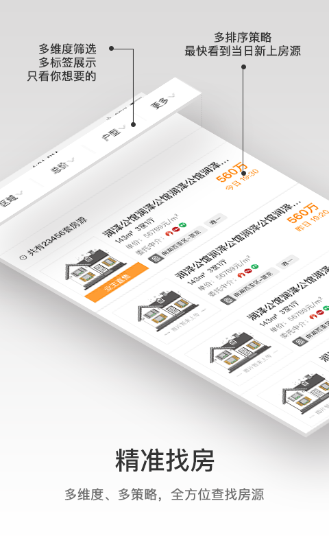 1、【搜尽房源】每天10亿次数据处理,搜尽各平台全渠道,清洗、去重,不放过一套房源;