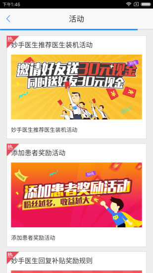 1、管理患者建立医生个人工作室,帮助医生增加粉丝。患者就诊现场或诊后下载妙手医生(患者端)扫描您的专属妙手医生二维码,向您报到,即可成为您管理的患者。之后,您就可以方便的在诊后对患者进行管理以及提醒复诊等工作。妙手平台将为您管理患者提供补贴;
