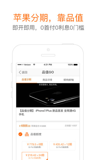 3、增长好信用,分期无压力,默认支付方式为品值支付。