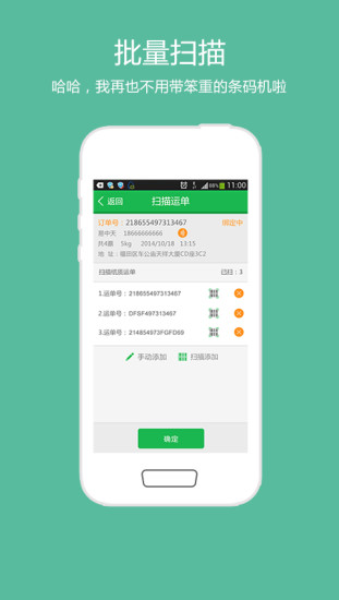 2、取件与订单管理:在APP上扫描运单,取件过程简单快捷,不带(枪:的日子很轻松;7天内的订单信息一览无余,取件任务管理方便,每天行程提早规划;在线支付,不再为假币、错收烦恼;