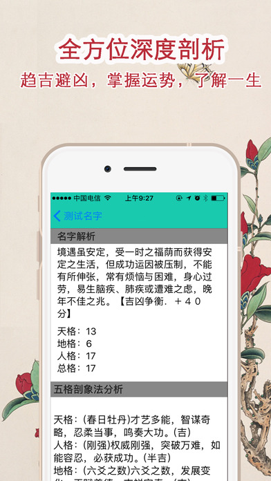 2、按照生辰八字、三才五格、生肖喜忌、字形意义分析,轻松解析好名字。