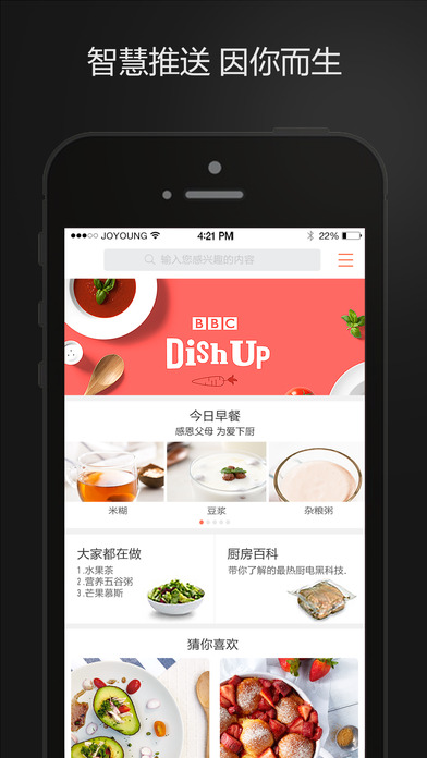 爱下厨可通过手机APP远程操控九阳系列小家电,实现健康美味的即时烹饪,让美食随时随地、随心所欲;定期推送各种花样食谱,满足吃货的无限想象;食谱分类操作简便,烹饪菜鸟瞬间变达人;用户DIY食谱分享,打造美食家们的生活圈!九阳,带你体验不一样的家居智能生活!
