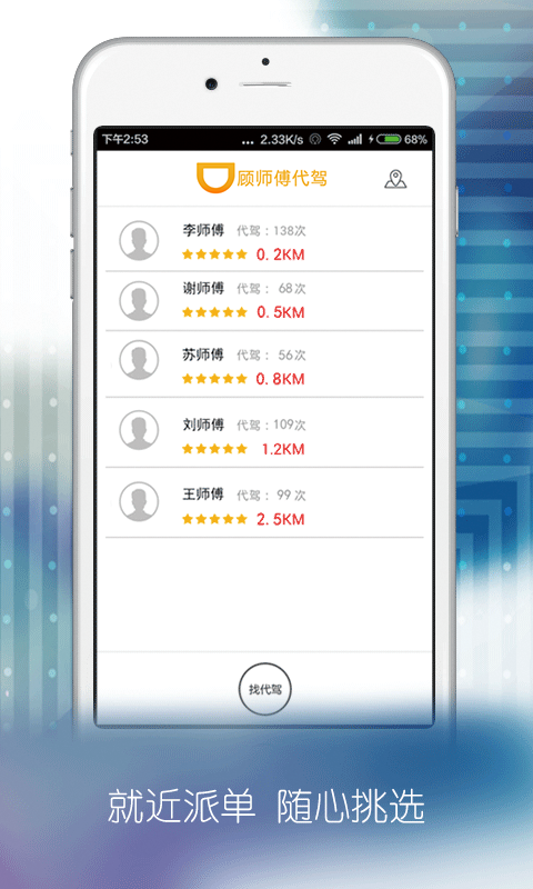 1、距离近:5公里内优先选择就近司机为您提供服务,代驾离您只有一步之遥。
