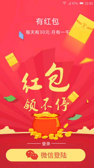 有红包是一个天天都有红包领的福利软件在这里每天有土豪公司半小时发一次红包,您可以领到淘宝红包,京东红包等等土豪发的红包。您也可以像偷菜一样和朋友派派红包,叫上朋友一起玩,抢他们的红包,好友越多红包越多。