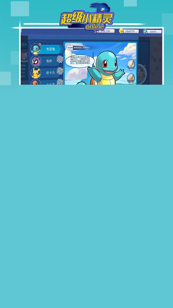 《超级小精灵OL》是一款经典题材的宠物养成对战RPG,捧腹搞笑的神奇宝贝剧情,清新卡通的画面场景,超多Q萌可爱的小精灵等你来收集,炫酷的技能特效,独创怒气大招,感受与众不同的游戏乐趣!