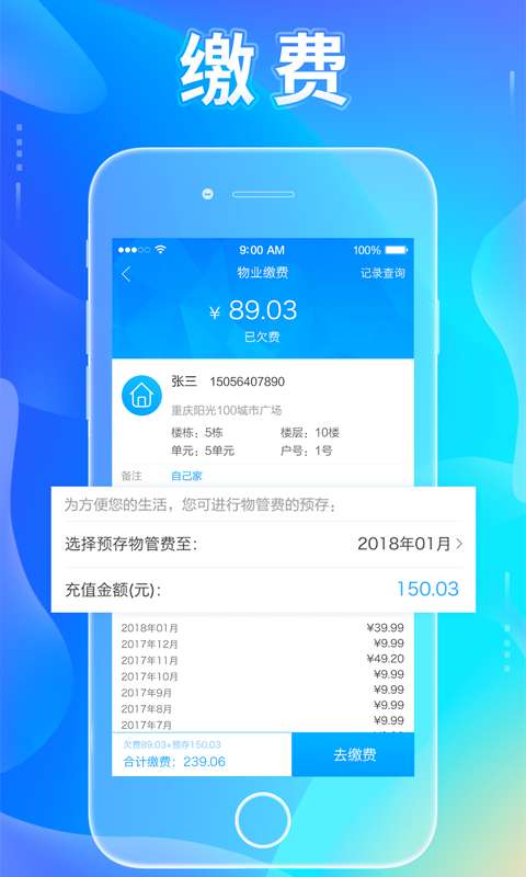 1、智能缴费:支持水电气费、物管费、宽带费等生活费用的缴纳;