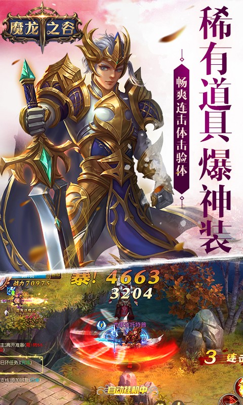 这是一款以英雄为题材的激斗3D动作手游,将韩国最前沿的美术和动作设定与中国玩家喜爱的玩法相结合,为玩家打造一款“韩国颜值、中国玩法”的王牌手游。魔龙之谷手游是一款画面非常棒的即时战斗手游,精致的画面配合各种创新的玩法,携带上你各式各样的英雄,一起踏上毁灭魔龙的道路。