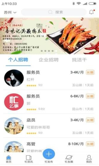 忙么事APP基于互联网大数据时代下应运而生,旗下APP主要提供企业招聘,店铺招工,蓝领阶层找工作以及社会闲散人员的工作需求的网络讯息发布。APP内有行业资讯以及交友聊天功能,让我们在工作生活中,多点乐趣,多些朋友,更多一些惊喜。