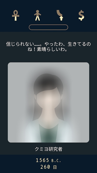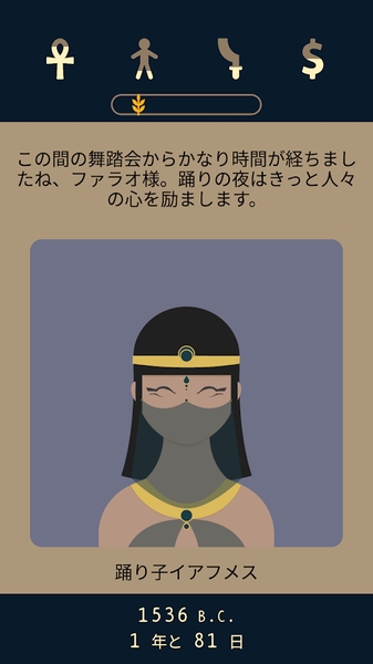 是一款文字类剧情手游,游戏中我们将化身为我们的法老王,并在游戏中做出我们的的选择,游戏中我们的国家将以4种形态进行产生,我们需要做的就是帮助我们国家得以在游戏中进行平衡,丰富的游戏剧情,将为玩家们带来超强的代入感,丰富的游戏道具,将可以帮助国家在危机中得以生存,丰富的游戏结局,等待着玩家们一一的进行我们的探索!
