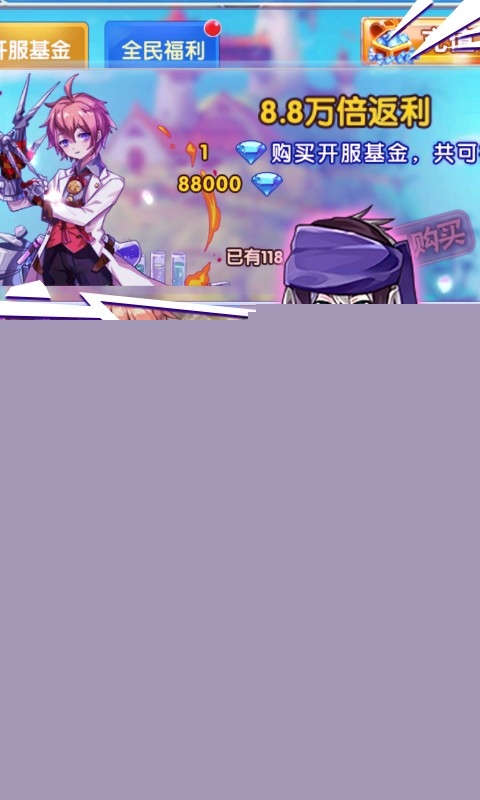 4、开服基金,1钻购买,宇宙炸裂8.8万倍钻石返利;每日上线就能领钻石,累计5万钻石全民有份!