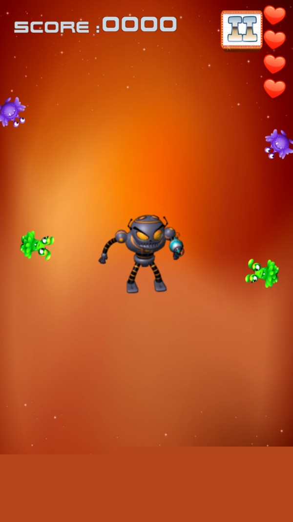 这是一款有趣的 冒险 射击游戏。玩家在游戏中饰演外星人杀手的机器人 角色 ,玩家需要使用武器枪械消灭从各个方位出现的外星人生物,考验玩家的手速和反应能力!为了在袭击中幸存下来,你只有四条命可以生存,所以要小心不要失去它们。战场看起来很混乱,敌人正在接近,你必须非常快地射击消灭它们,不要让他们靠近你,因为他们会伤害你。