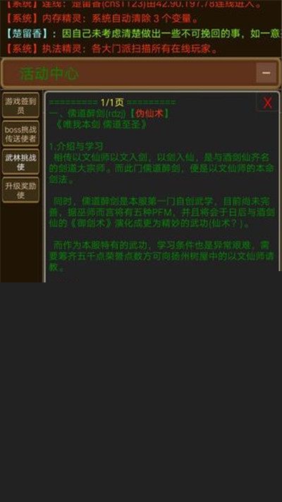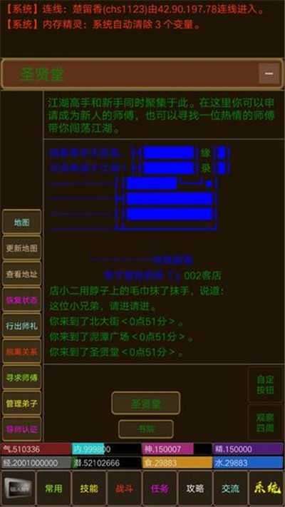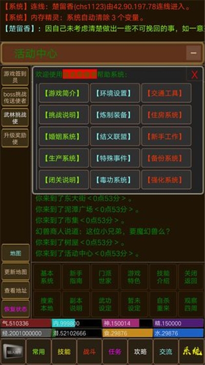 3、游戏江湖世界都是文字呈现出来的,但是也给玩家一个极大的世界脉络,玩家可以尽情畅玩。