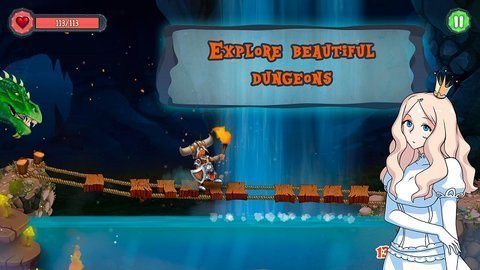 玩家在这里扮演一位勇敢的骑士,在充满危险的地下世界进行战斗,以解救公主,从而在这里打败各种各样的恶魔,来进行解锁更强大的能力,穿过充满致命陷阱、各种障碍物和怪物的黑暗洞穴,必须拯救消失在洞穴中的公主。骑士急急忙忙地帮忙,尽可能快地跑。控制英雄的行动,帮助他克服路上的所有障碍。快点,因为骑士被一条喷火龙缠住了。收集分散在地牢里的黄金和各种资源。制作药剂来恢复你角色的健康。改进你的装备。