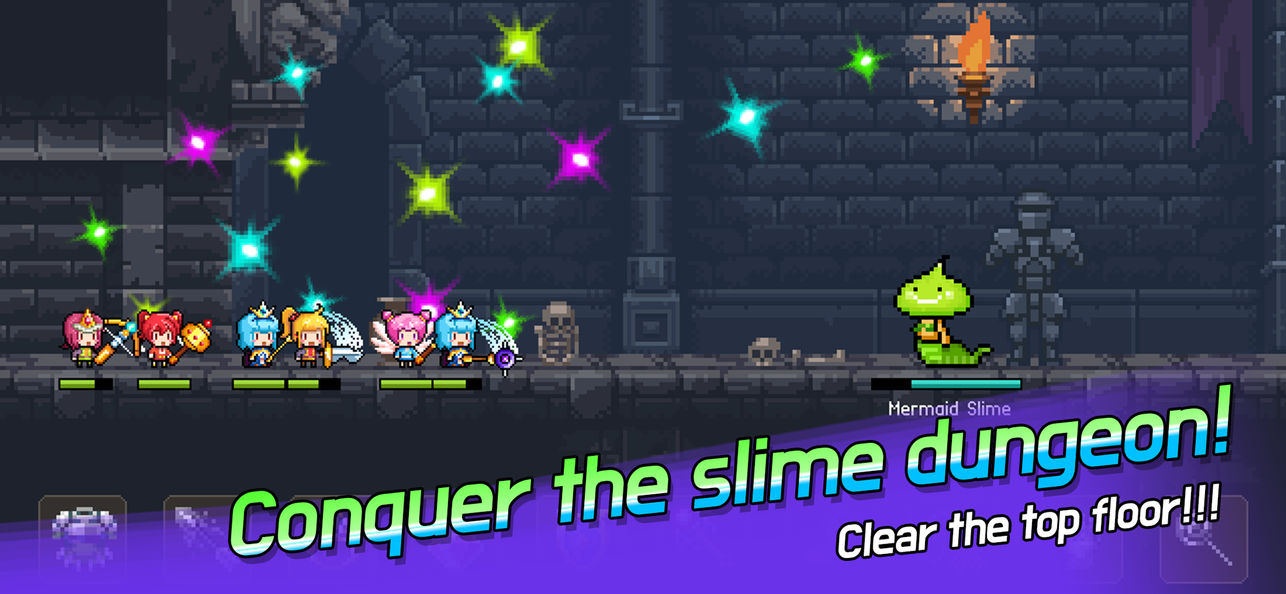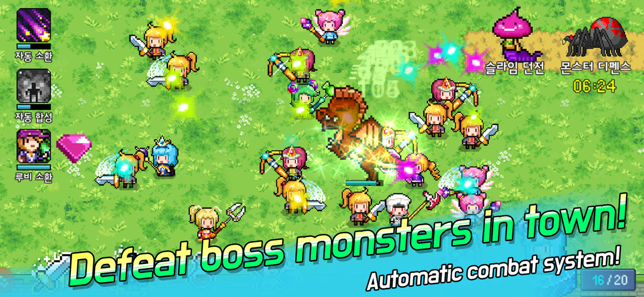如果您发现超过2名相同的勇士,点击其中的一个。您只需通过触摸两次合成甚至几十人在一个时间。通过超级简单合成满足多种有吸引力的女孩战士。你可以挑战煤泥地牢带领你从合成得到了勇士。攻击和防御巨大的敌人攻击,你不必担心怪物的任何人群,如果你已经通过练级起来,并提高设备的建立你的战士作为一个强大的单位来完成。