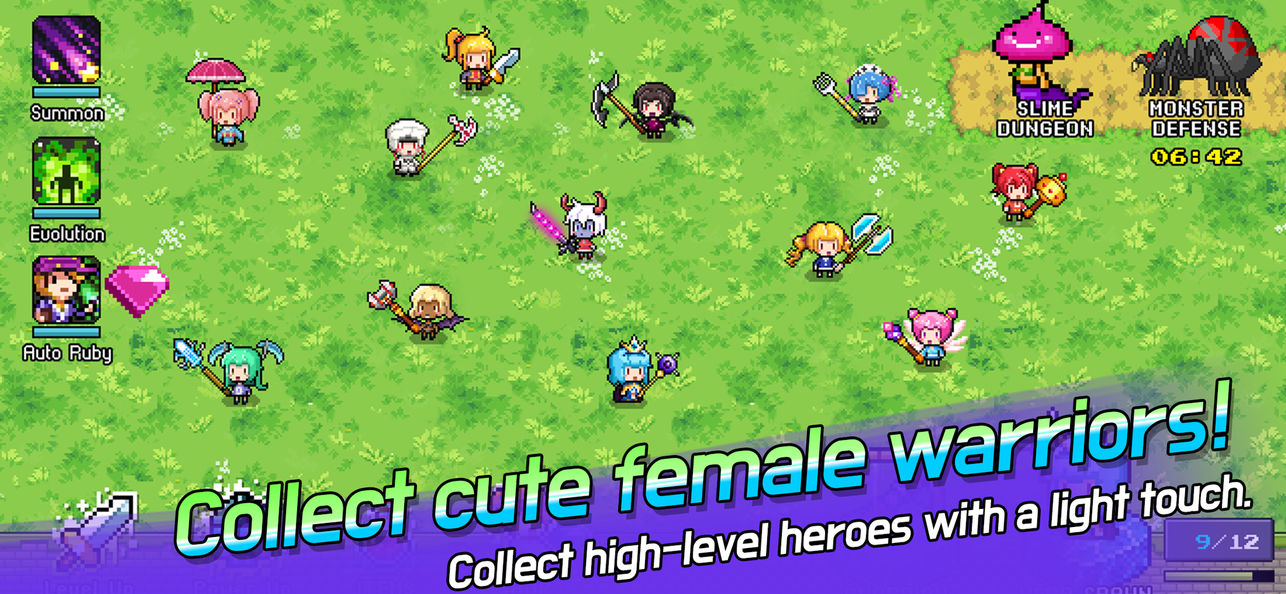 “英雄进化,”一个超级简单的休闲RPG召唤你的战士。收集超级可爱的性格像素~~!丝锥?!!只需轻点两次,你的新战士将被传唤!“英雄进化,”一个超级简单的休闲RPG召唤你的战士[从合成到战斗的整个播放可自动完成?!!]如果您发现超过2名相同的勇士,点击其中的一个。您只需通过触摸两次合成甚至几十人在一个时间。通过超级简单合成满足多种有吸引力的女孩战士。这是比养一个性格比较!