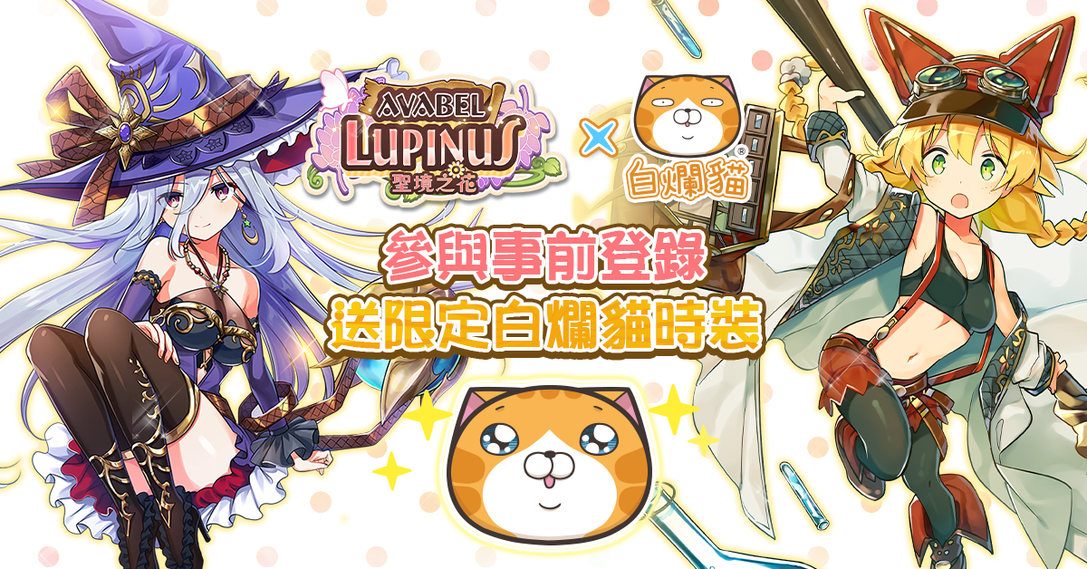 官方表示,《Avabel Lupinus~圣境之花》每季都会增加全新风格的时装,并不定期推出 IP 合作限定时装,满足玩家对时装系统挑剔复杂的需求,而繁体中文版于开服即与LINE人气贴图「白烂猫」进行合作,现在只要参加事前登录,就可获得「白烂猫限定时装T恤」,由于是合作限定时装,未来将不再开放,也没有其他管道可以获取,是非常珍稀的梦幻逸品时装,请所有期待《Avabel Lupinus~圣境之花》的玩家务必完成事前预约。